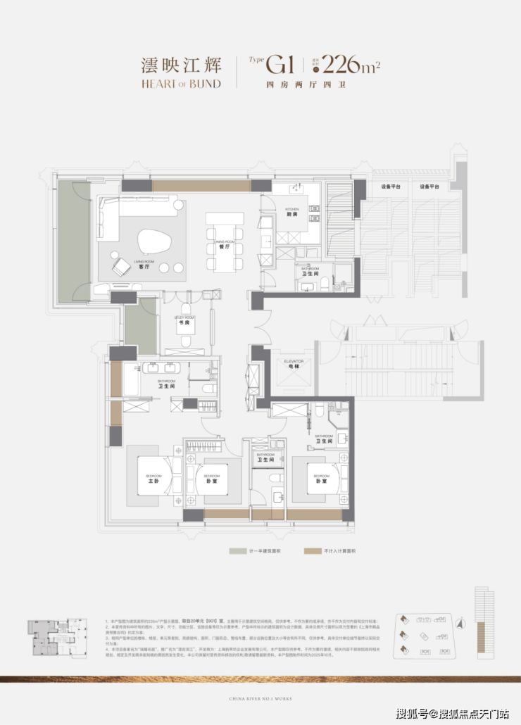 226㎡四房两厅四卫,三卧室南向排布,主卧270°转角无柱直面江景,蝴蝶户型布局,最大程度释放了侧面的采光及观景能力,楼下的园区景观谁看谁沦陷!