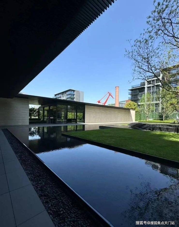 景观设计方面,保利世博天悦采用 引江入园、以水带路的手法,将滨江舒阔的国际生活平移到社区内,打造约 6万㎡景观秘境,媲美全球奢华酒店。采用大面积的留白和现代禅意的表现手法,呈现开阔舒展的质感。