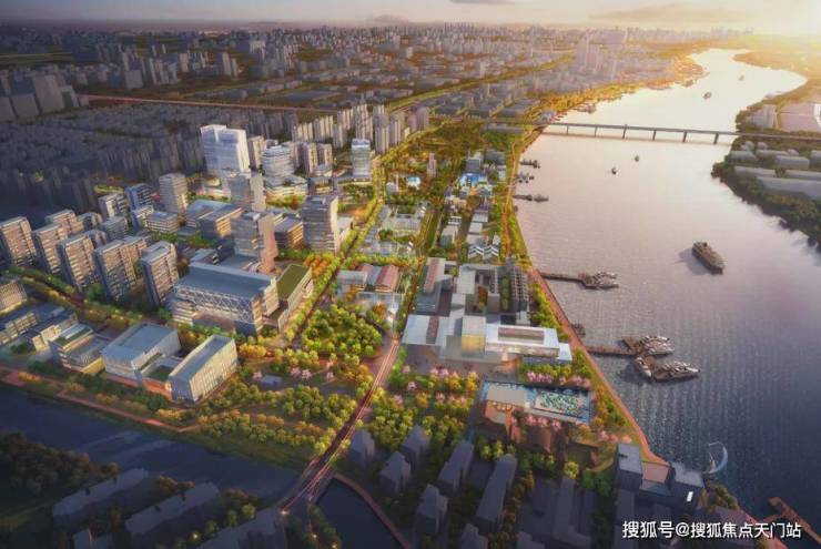 江的意境:现代风格,非对称设计,一江一河之上,江河建筑线条。