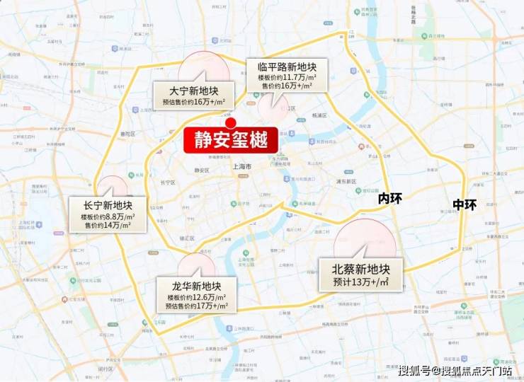 别说静安内部了,扩展到全市,简单看看几大热门板块的新地王,浦东北蔡新地块预计13万/㎡左右、长宁新地块14万/㎡左右,临平路16万+/㎡、徐汇龙华更是奔着17万/㎡去了,这些中环附近板块3房总价起步就是1500万以上!