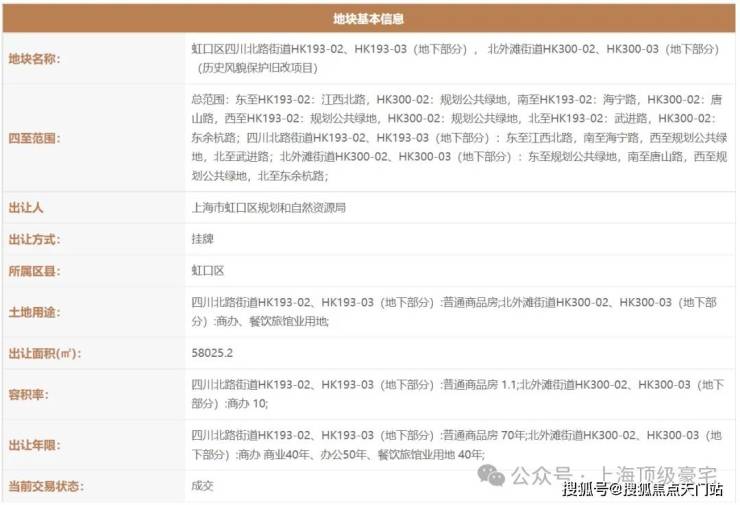 2021年2月,上海虹口城市更新建设发展有限公司(上海地产联合体)以 111.35亿拿下了 虹口区四川北路街道HK193-02(17街坊弘安里)、HK193-03(地下部分);北外滩街道HK300-02、HK300-03(地下部分)(历史风貌保护旧改项目)