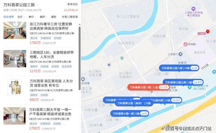说这话是有依据的,万科翡翠公园就是一个典型案例,被张江园区包围,是张江高知人群改善置业的香饽饽,你再看一下它现在的价格: