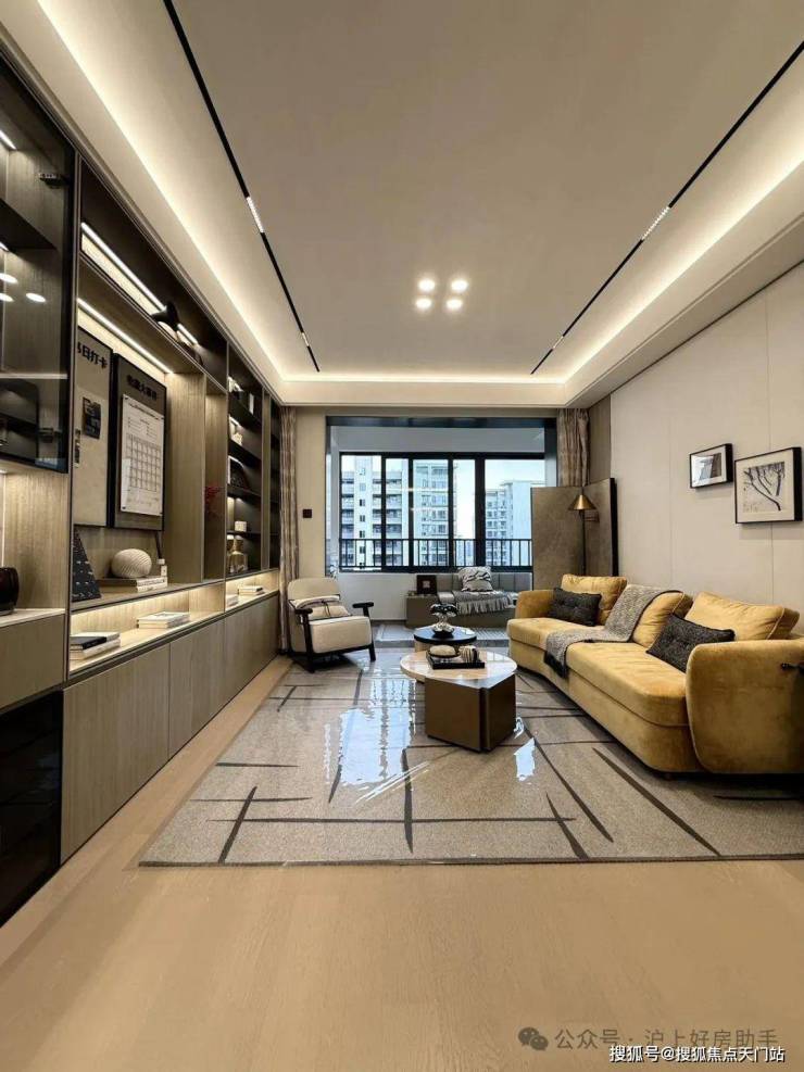 不仅标配了中央空调+新风系统,而且还设计了全屋墙布、不锈钢踢脚线、磁吸轨道灯带设计等等……从装修大件,到细微之处,无一不体现了这个精工国企对于这个社区的匠心。
