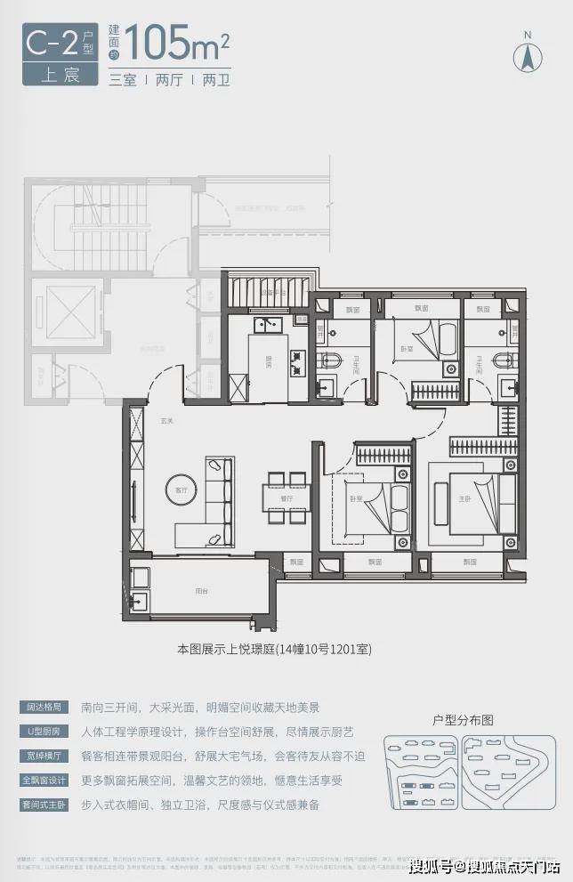 建面约105㎡3房2卫有两种风格(宽厅、竖厅),尤其是宽厅户型,设计格外惊艳。