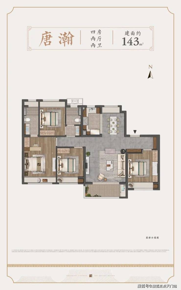 约129㎡做到了市面少有的四开间朝南,配以南向大横厅客厅,社交空间的尺度感在同级中是“奢侈的”。