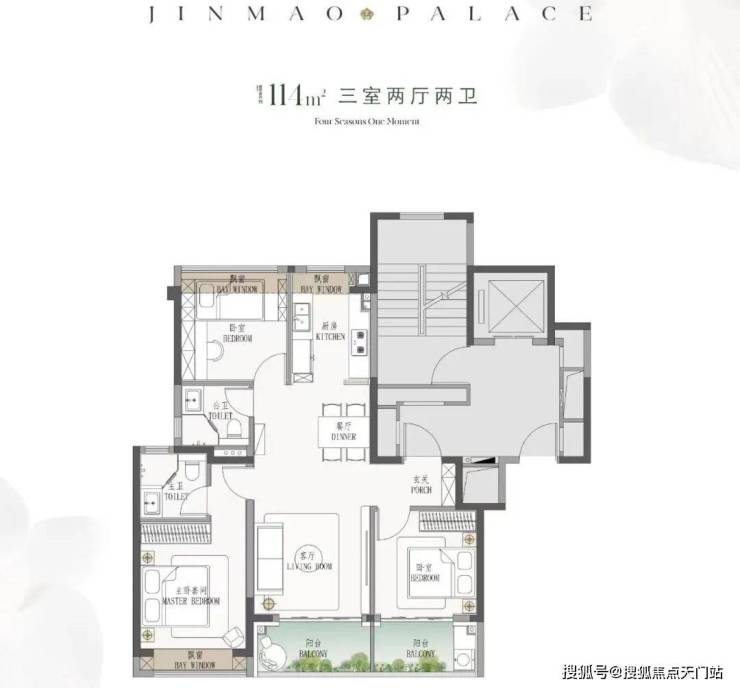 项目推出建面约114、126、144㎡3-4房,偏改善,满足不同家庭需求。