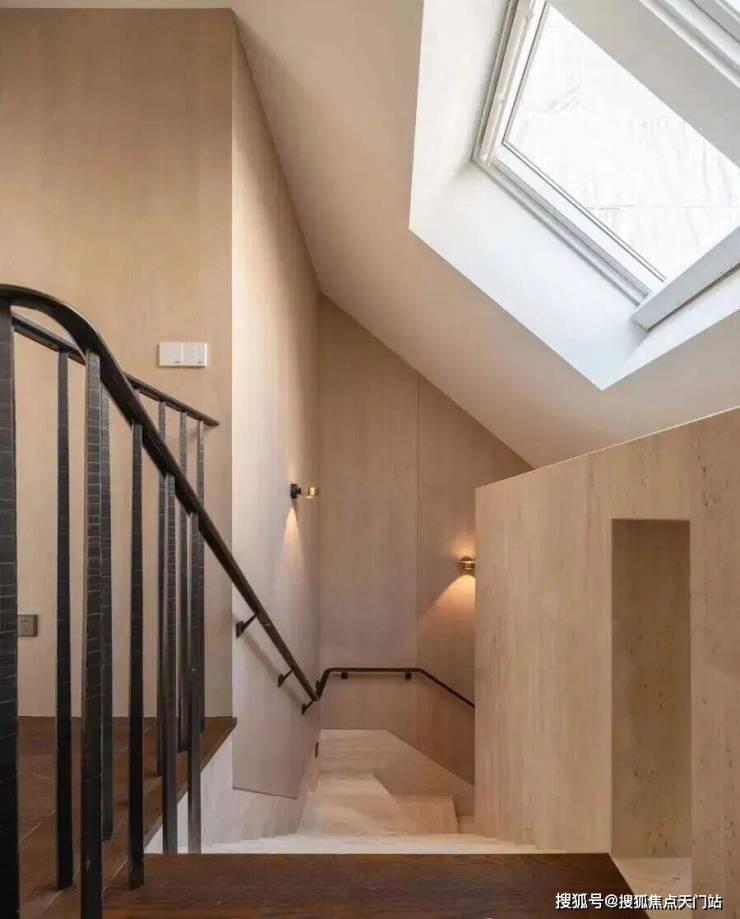深铜色的栏杆和扶手融合传统与现代语汇,演变出一种当代型态,与现代白色洞石相映成趣,营造出优雅纯粹的意境。