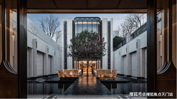 比如,整个下沉式庭院材料选用 土耳其进口老虎玉 , 由匠人耗时60天手工打磨定制 ,可见海上·清和玺对业主归家仪式感设计的用心与苛求。海派光厅之外的归家迎宾树木更是由设计师 辗转多个城市才寻到的、树龄超60年的福木“紫薇” 。