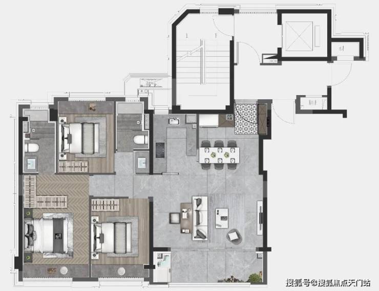 建面约103㎡3房户型: