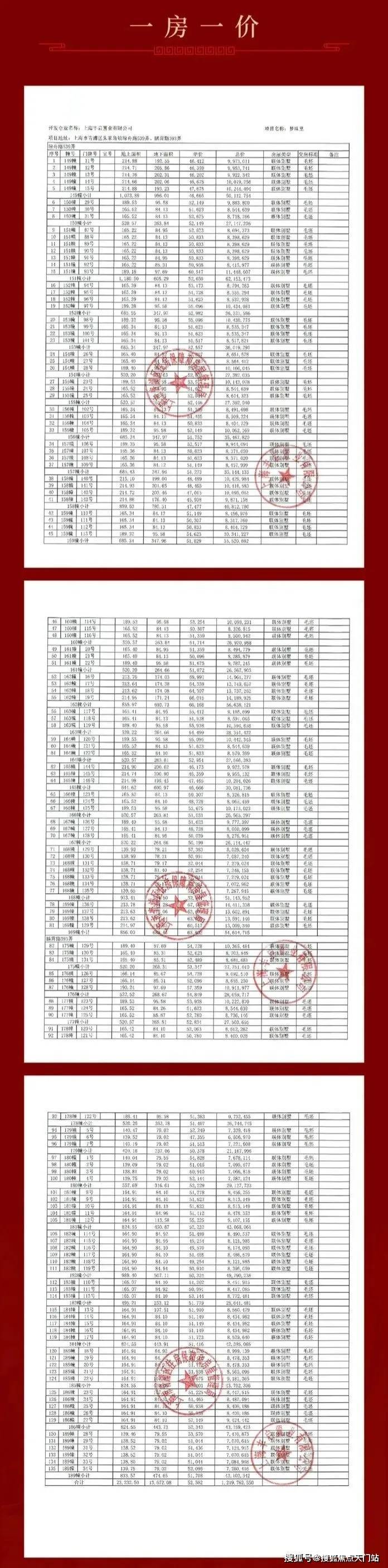项目一房一价表▼