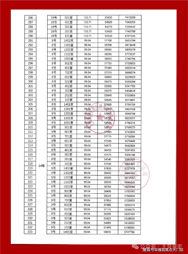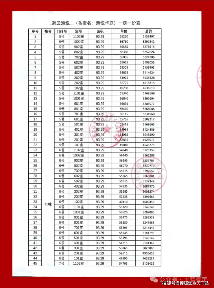 最新一房一价表: