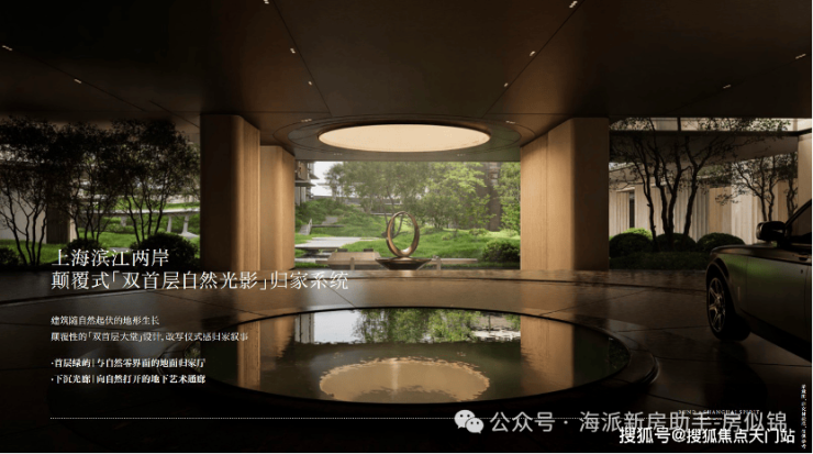 第一重:旗舰门厅与十二帆影 :业主先穿过寓意“上海之帆”的旗舰门厅,再路过12座8米高的“帆影门廊”,建筑语汇先将滨江的航海文化融入归家礼序。