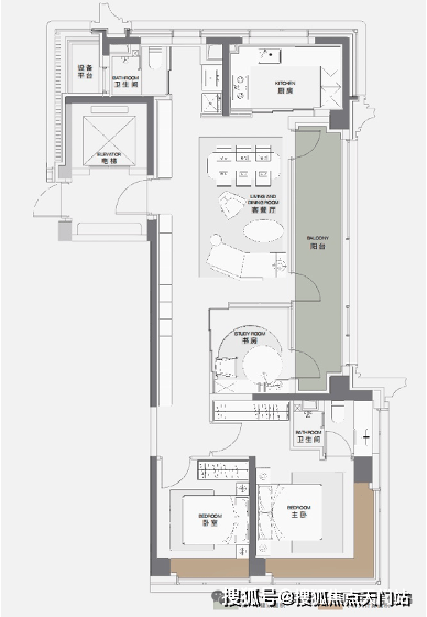 中间户想表达的是,以家人为中心,每个空间给家人极致照顾。