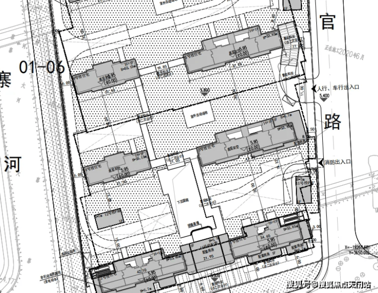 01-03(中间),规划10幢楼,其中一幢为保障房,总高17-18-20层,小区中心位置的商品一楼为架空层,南北楼间距30米。