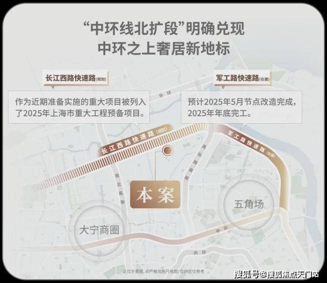 作为上海市重大工程,「中环北抬」通过军工路、长江西路、沪太路三条快速路互联,重构浦西北交通骨架。这项工程不仅延伸中环线,更通过立体路网打造串联宝山、杨浦、静安的「城市交通脊梁」,竣工后将形成复合功能交通带,推动沿线板块价值升级。