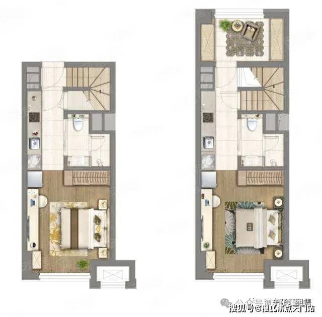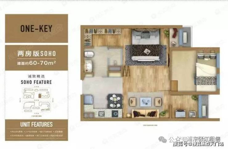卫生间:1个卫生间设计,布局紧凑。厨房:开放式厨房,油烟恐干扰客厅。。 其他:4.5米挑高,买一层享2层。。 客厅:客厅朝被,带阳台,采光不错。。