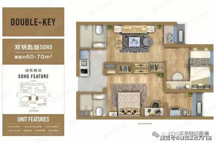卧室:双主卧设计,均朝南带套卫与衣帽间。。 书房:书房朝南,带朝南大飘窗,室内采光极佳。。 卫生间:三个卫生间设计,日常生活非常方便。。 其他:专梯专户设计,出行非常方便。。