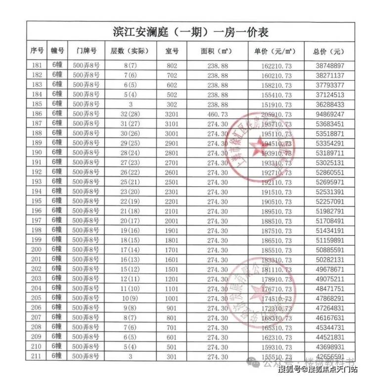 户型图和一房一价表