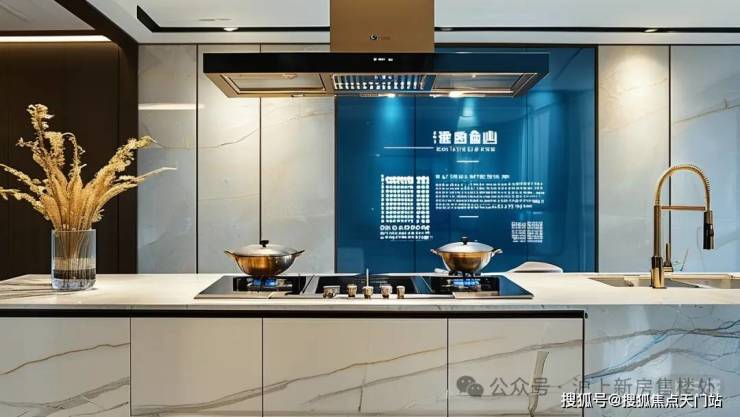 项目全装修交付,集采价不低于3000元/㎡,选用博世燃气灶三件套、摩恩抽拉式水龙头等超一线品牌,U型厨房动线流畅如“米其林后厨”。墙面采用皓晶石、蓝翡翠奢石,细节处尽显轻奢格调。
