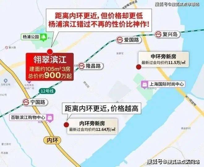 一方面,项目距离内环直线约800米,是目前整个杨浦滨江距离内环最近的项目之一,但项目的均价却不到约11万/㎡,总价约900万起。