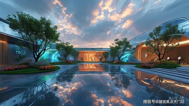 外立面:金属质感铝板与玻璃幕墙形成未来感镜面,反射云影天光;
