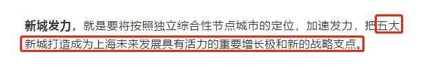 文章中指出,在十四五期间,上海五个新城要加速发力,按照独立综合性节点城市的定位, 打造成为上海未来发展具有活力的重要增长极和新的战略支点。