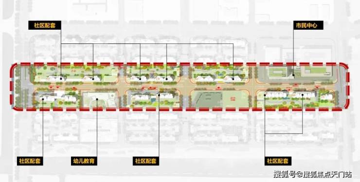 商业街:沿恭礼路设置商业店铺,创造形式丰富多样的时尚街区, 形成充满烟火气息的城市街道。