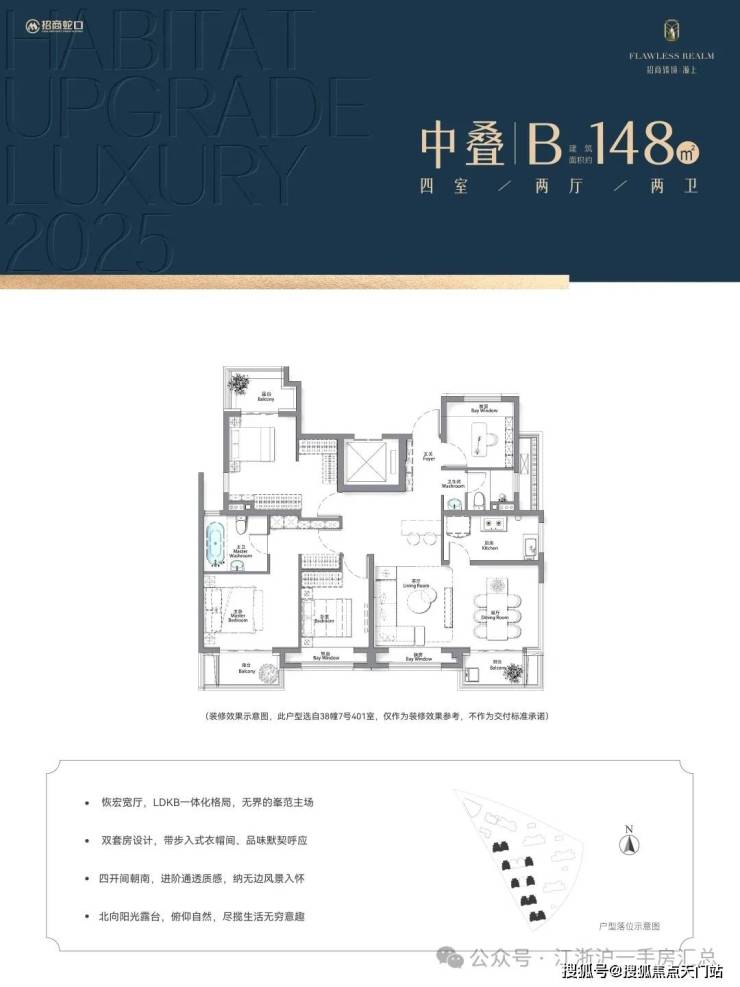 【招商臻境】 项目还推出建面约146-150㎡甄稀的滨水叠墅,总价约1100万起。