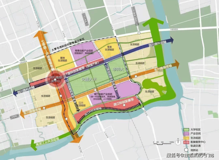 正处上海南部科创中心“一廊一轴”横纵交汇中芯点和4大科创区围合中芯点。