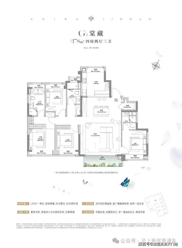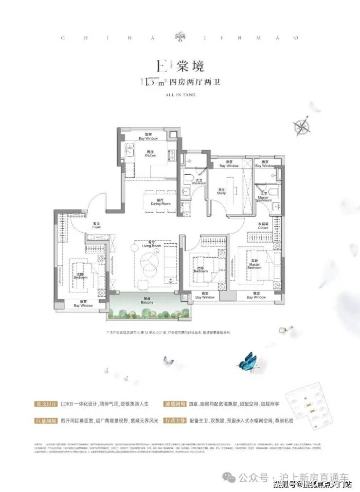 全景舱艺境美宅,标准层约3.1米层高、270度全景飘窗、LDKB一体化、南向跑道阳台、超12米南向全屏开间,无限视野尽收眼底,还有超金喜的满配精装, 全上海只有央企金茂才能做得到。