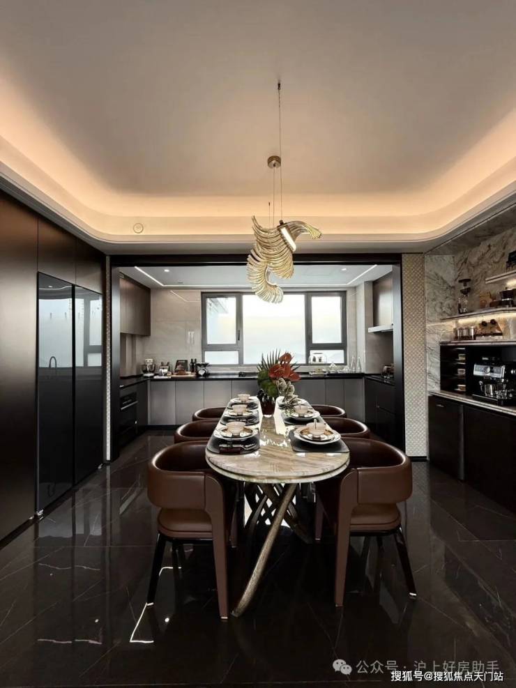 南向大横厅,用光线阐述空间的舒适度与高级感,U型中厨搭配多功能开放西厨,满足世界级美食品位。