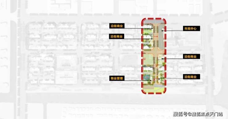 一街为活力商业街,通过纵向布局,在街道两侧配上丰富立体的商业,包括沿街商业、邻里中心、乐活商业街等,满足居民日常的需求。