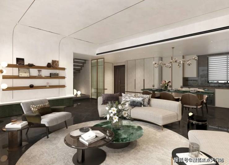 立面腰线等细节处则提炼汝窑 “金线”传奇符号,以还原精雅的繁复工艺,为建筑线条进行金线勾边,点睛强烈而隽永的美学仪式感;较高的窗墙比延伸视野边界的同时,呈现极简派超高颜值…诸如此类的精工细节不胜枚举,真正做到了坚持骨子里东方文化标签,用现代材料与传统技法相结合,打造出符合现代审美需求的高质人居产品。