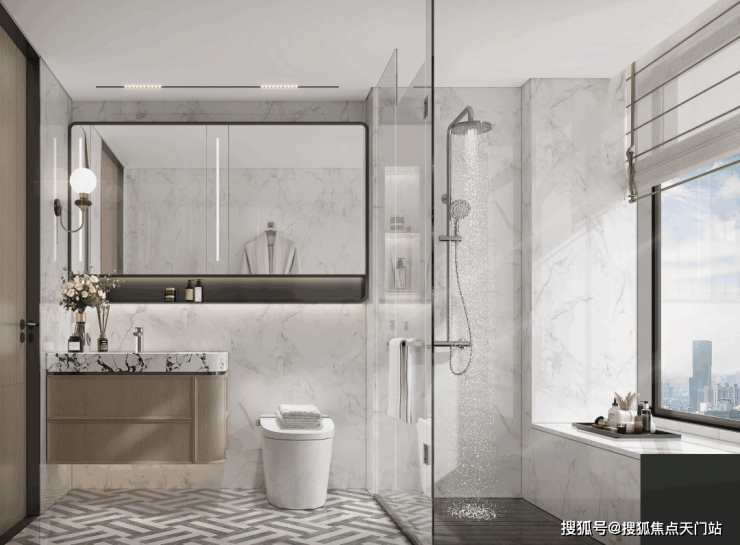 卫生间的收纳更是创新!双卫配置大容量镜柜并增设置物台提升实用性;公卫通体收纳柜,细枝末节的杂物均可一并容纳!