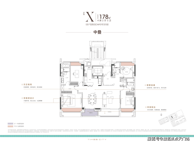 项目的中叠 四开间朝南,超大IMAX的采光面,妥妥市区豪宅大平层的尺度感。