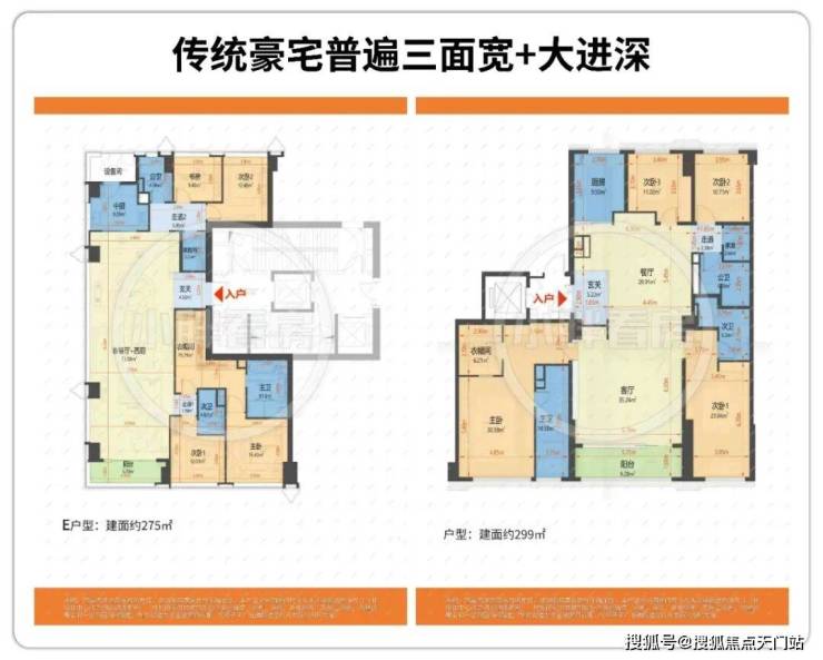 市面上多数顶豪户型普遍三面宽+长进深设计。