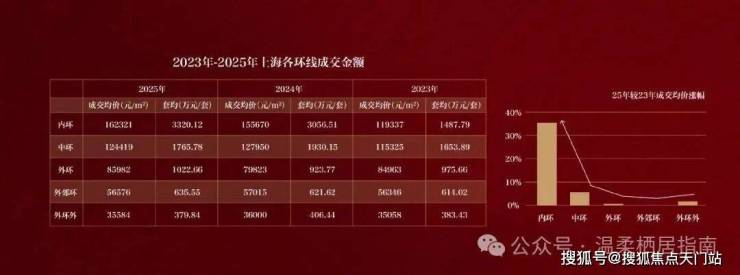 从近三年上海成交数据看,中外环以及外环外成交价格基本保持稳定,内中环稳步上涨,唯独内环内呈现跳涨态势。数据显示,内环内新房成交均价从 2023年约11.9万/㎡跳涨到2025年约16.23万/㎡,三年涨幅达到36%。