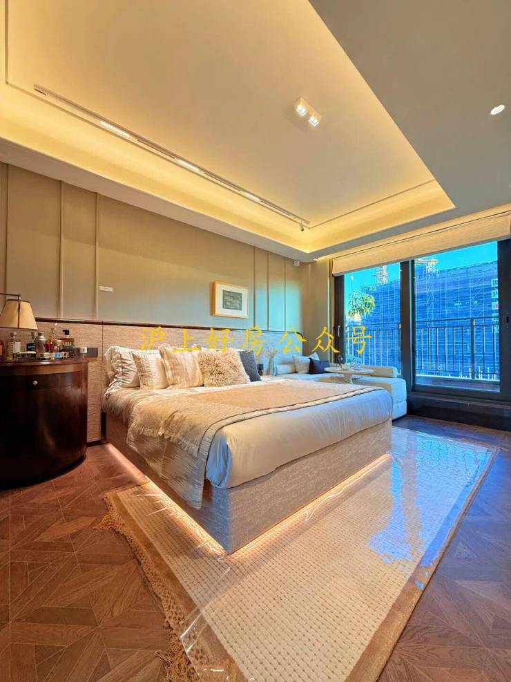 建面约139㎡精奢上叠,南向面宽同样达到了约9.2m、三开间朝南,首层全明设计,南北通透,面面瞰景,大尺度U型厨房,约2.2m的大岛台,搭配LDKB一体化动线,盛载亲情时光,温馨南向卧室搭配全景飘窗,满足家中长辈静心安居所需;