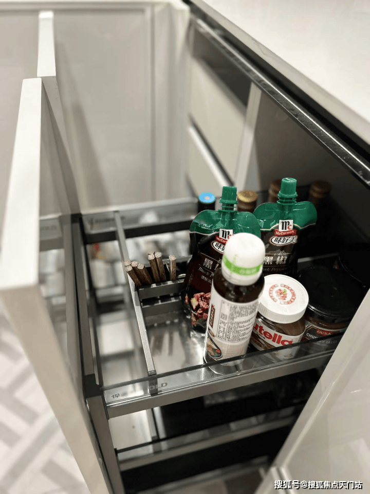 可抽拉的零食柜、厨房抽屉式碗碟拉篮、包括卫浴的收纳墙,于细节之处见真章。