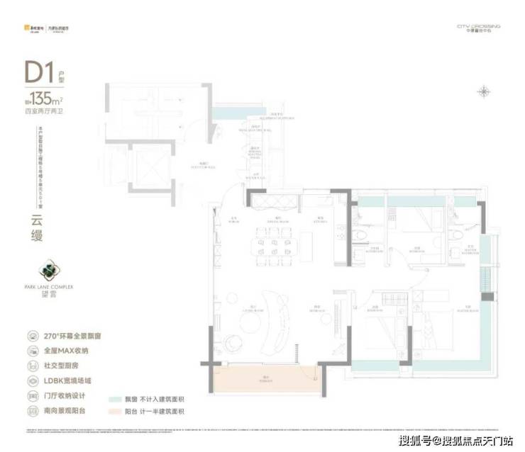 电梯厅全明通透+类一梯一户设计,满足大户型业主对于入户私密性的生活需求。此外还增加两处优秀设计:多飘窗和惊艳的MAX收纳尺度。