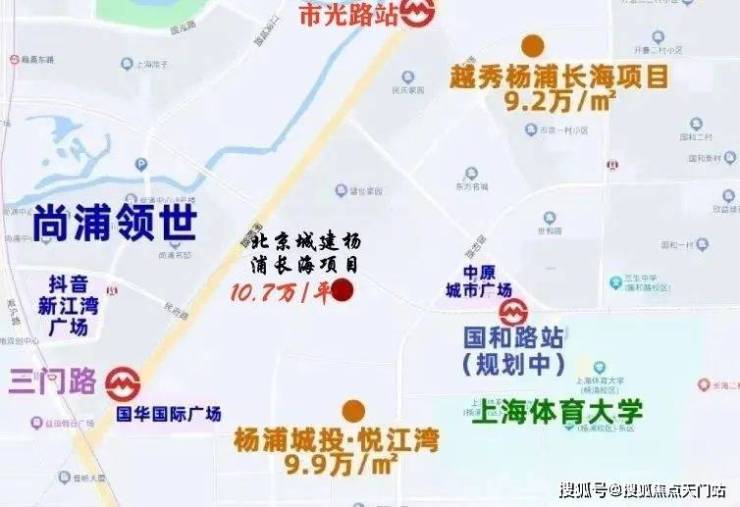 比如年初开盘的新房杨浦城投悦江湾单价9.9万/平,杨浦长海新地块(北京城建竞得)联动价10.7万/平;