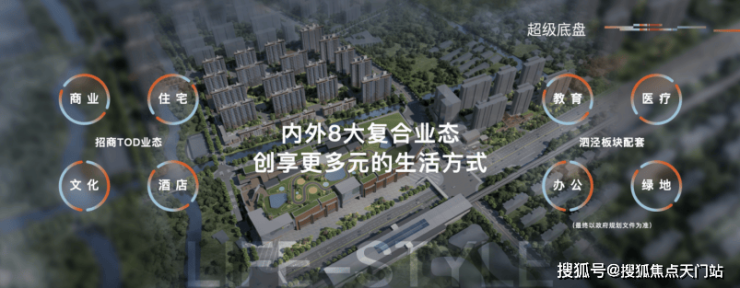 【招商时代潮派】由花园城系商业+滨水国际住区+舒适酒店+文化空间共同组成,总体量约50万方,将打造成为新一代城市TOD标杆。