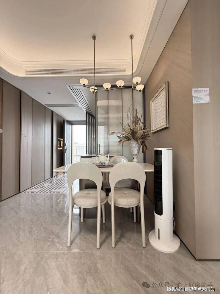 入户门厅以弧形悬浮顶棚为特色,为业主带来柔和温润的归家关怀,让归家的每一步都充满舒适与惬意。