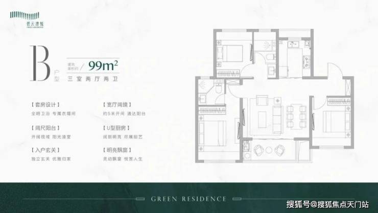 精心规划“一环、一轴、三园”,于建筑中另辟一方天地,以绿意包裹整个小区,打造绿氧环绕的公园住区。