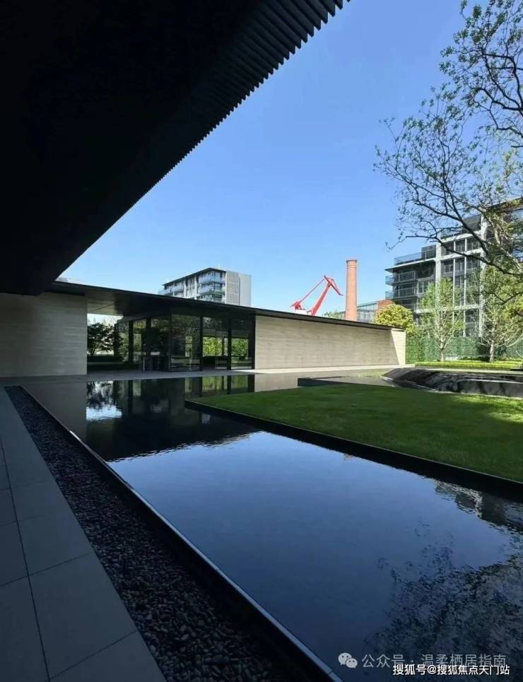 景观设计方面,保利世博天悦采用 引江入园、以水带路的手法,将滨江舒阔的国际生活平移到社区内,打造约 6万㎡景观秘境,媲美全球奢华酒店。采用大面积的留白和现代禅意的表现手法,呈现开阔舒展的质感。