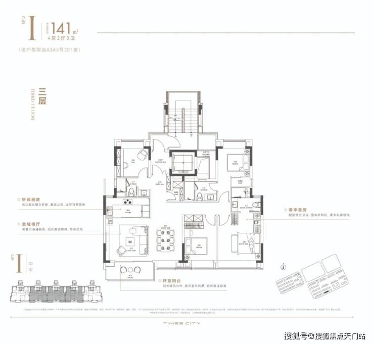 华润置地时代之城高层产品将百平上下的改善户型做出了轻奢级的居住体验,把约133㎡的改善四房做出了豪宅的尺度感。