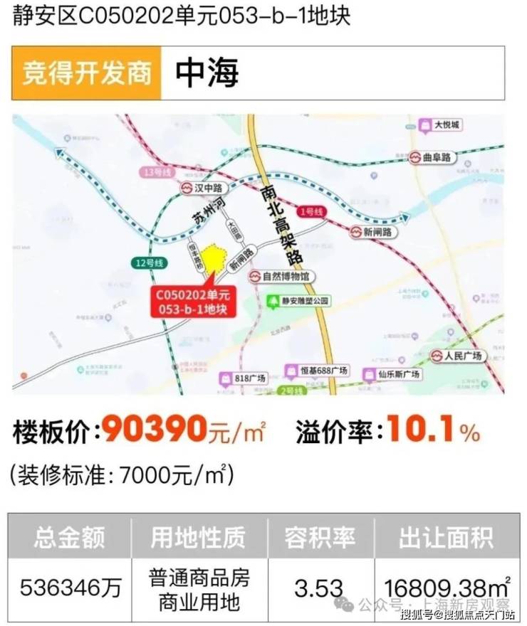 日前,新鲜出炉的今年第5次土拍结果,也应证了这个现状,优质项目竞争激烈,价格不断攀升,尤其是同属静安区的曹家渡地块 (静安区曹家渡社区C050301单元9A-20地块),溢价31.2%,楼板价就达到11.41万元/㎡!