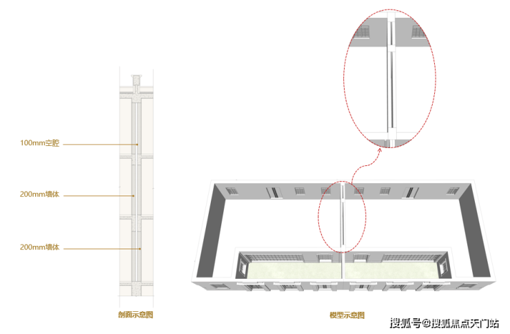 与其他风貌共用一堵分户墙不同的是,忻园的风貌别墅采用 双层分户墙做法 ,每户之间没有共用墙。200mm厚度的墙体,中间还设置了100mm空腔,避免邻里的相互影响,带来舒适静谧的居住感受。