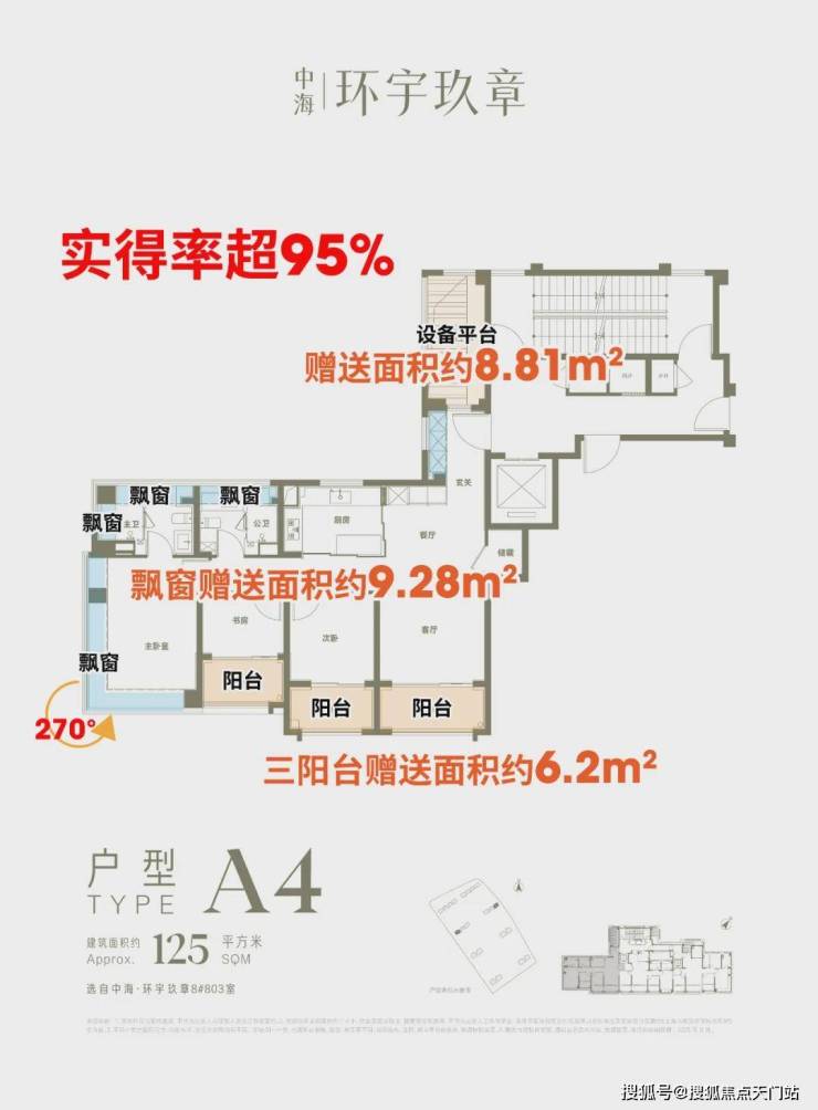 ①、实得率超95%,三阳台+罕见设备平台附赠+全屋飘窗,实用面积堪比常规145户型。
