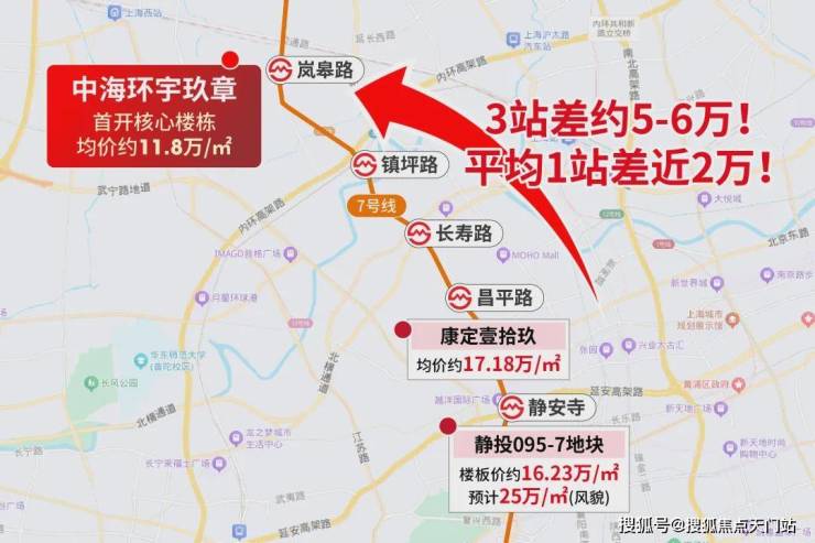 环宇玖章与17.18万/㎡的康定壹拾玖只差3站,但这3站均价却差5-6万/㎡。